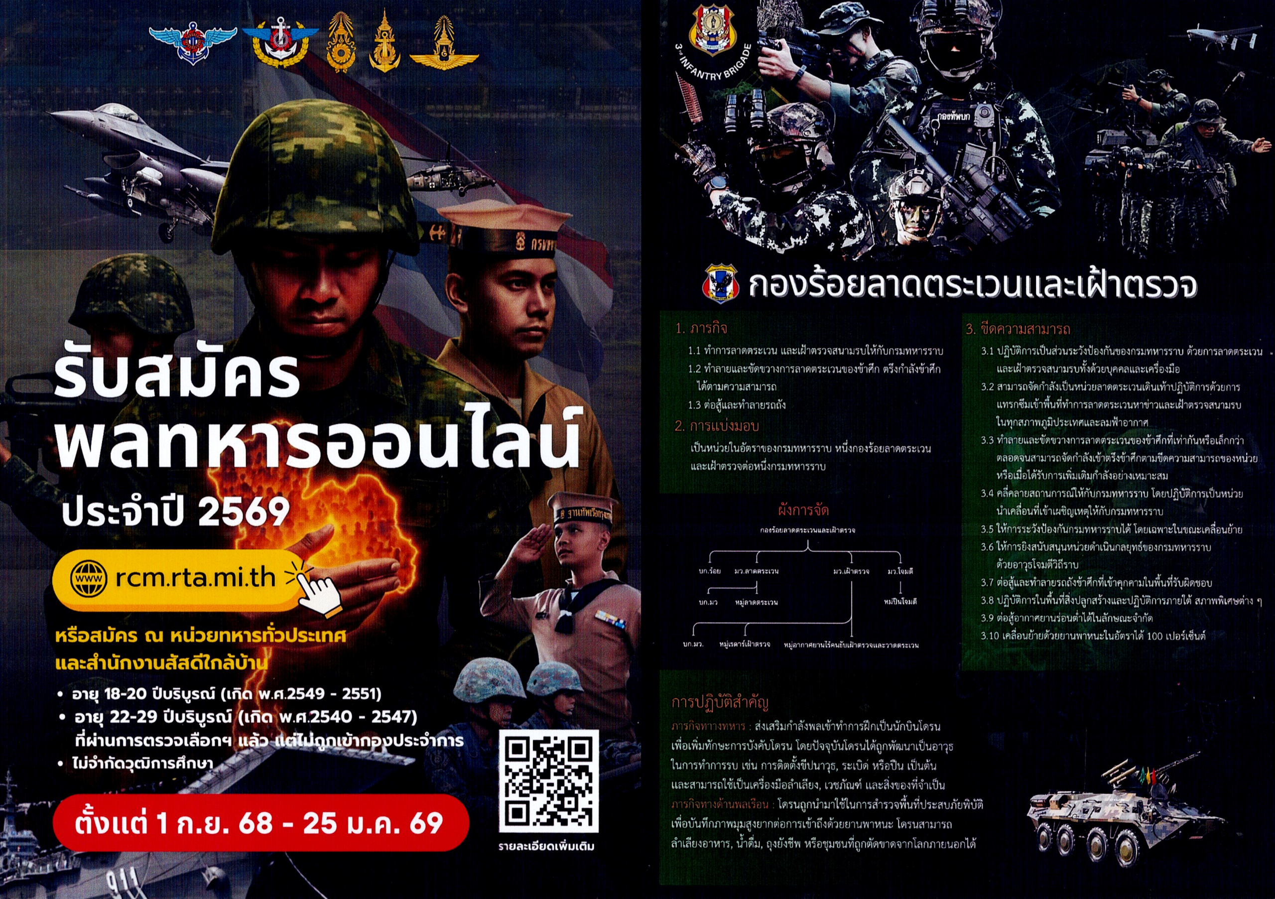 ประชาสัมพันธ์กองร้อยลาดตระเวนและเฝ้าตรวจรับสมัครพลทหารออนไลน์ ประจำปี 2569