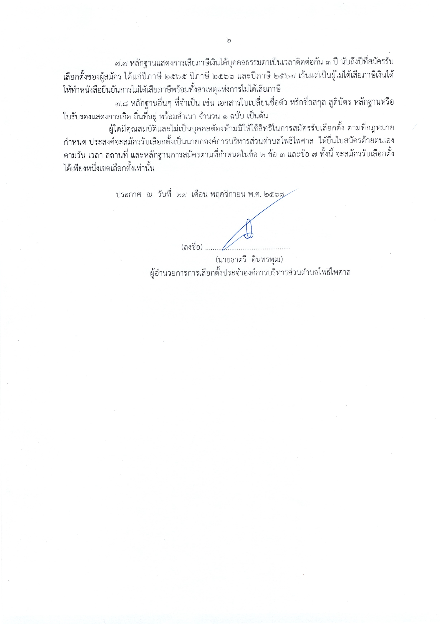 ประการผู้อำนวยการการเลือกตั้งประจำองค์การบริหารส่วนตำบลโพธิไพศาล เรื่องให้มีการเลือกตั้งสมาชิกสภาองค์การบริหารส่วนตำบลโพธิไพศาล →